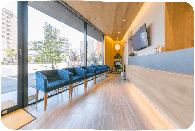快適な時間をお過ごしいただけるように、待合室は自然光がたくさん入る、明るくあたたかな雰囲気のつくりにしています。