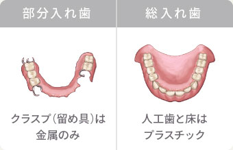 - 入れ歯に食べ物が挟まることがあり、虫歯のリスクが高くなる